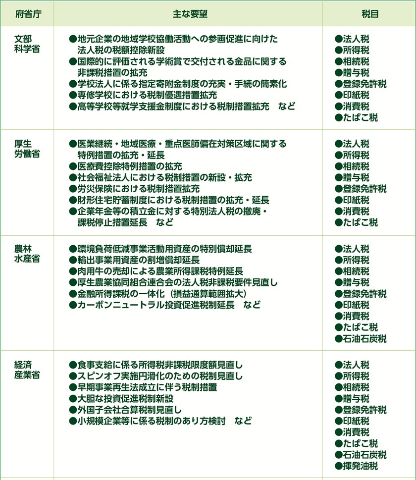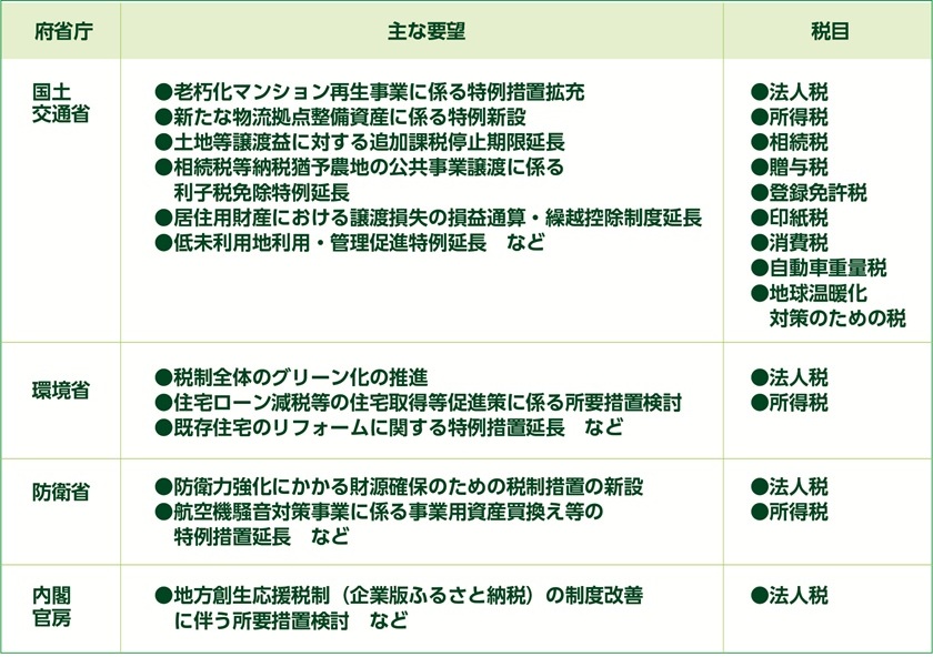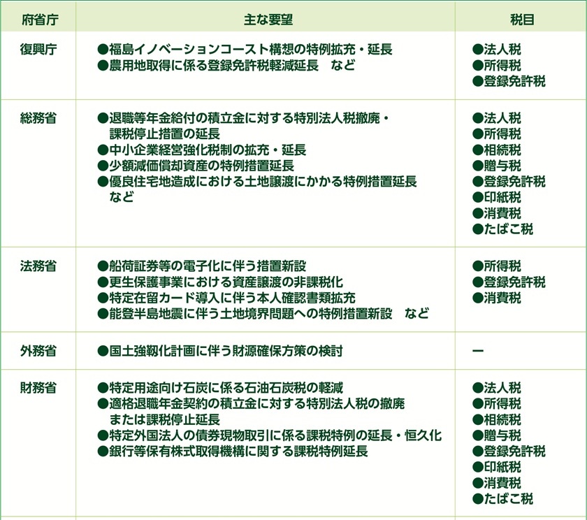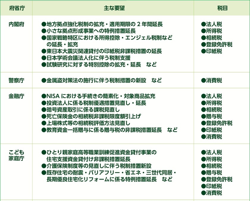 これらの要望は業界団体の意見も踏まえて与党税制調査会で議論され、例年12月中旬には「税制改正大綱」として取りまとめられます。