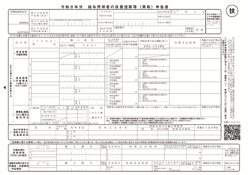 給与所得者の扶養控除等(異動)申告書