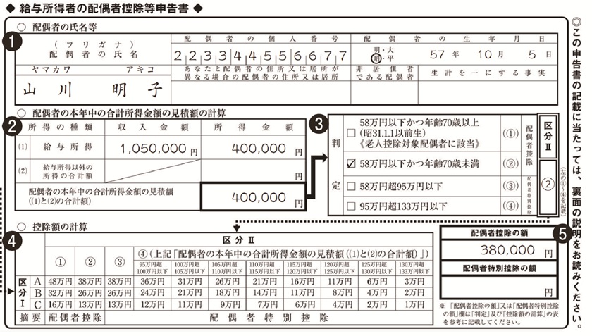 配偶者控除等申告書の書き方と記入例