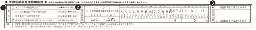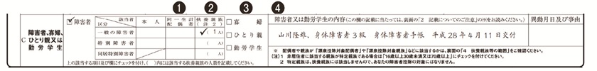 3.以下に該当する場合は、チェックをつけ、該当する人の氏名や障害の程度などを記入します。