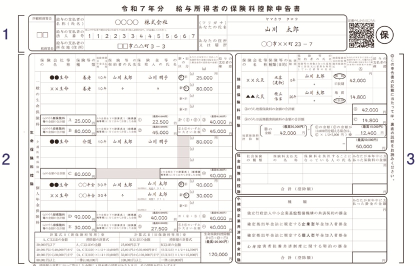 本申告書は、従業員が一年に支払った以下のような各種保険料を年末調整に反映させる書類です。