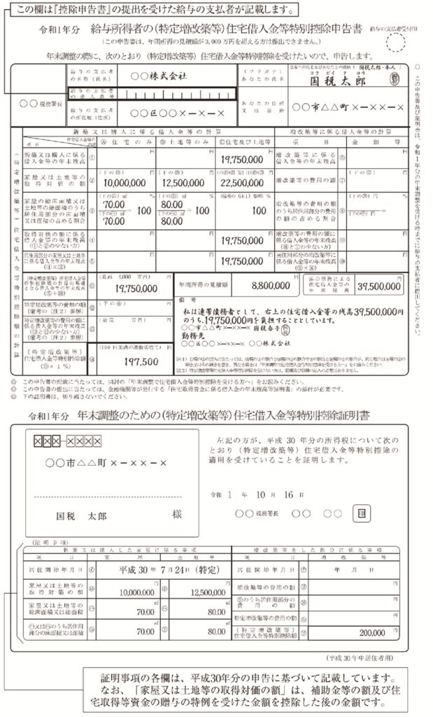 給与所得者の(特定増改築等)住宅借入金等特別控除申告書