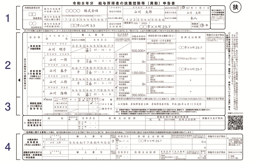 扶養控除等(異動)申告書の書き方と記入例