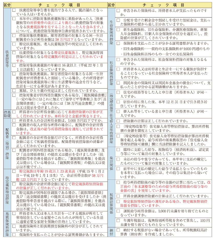 出典:国税庁|令和7年分年末調整チェックリスト(外部リンク)まとめ