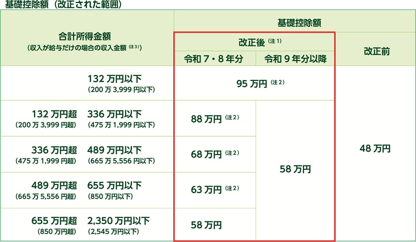 出典:国税庁|令和7年分年末調整のしかた(外部リンク)年末調整の変更点①基礎控除の引き上げ