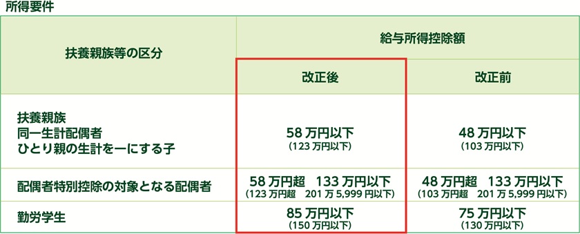 年末調整の変更点④扶養親族の所得要件緩和