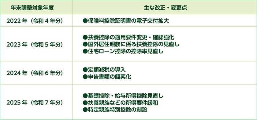・2022年から2025年までの年末調整改正の流れ