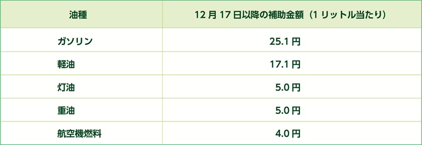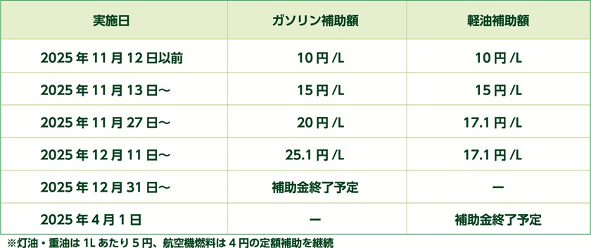 ・ガソリン補助金は2025年12月31日で終了