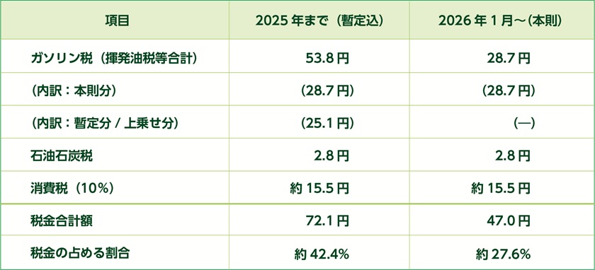 なお、軽油にも旧暫定税率はありますが、2026年4月に廃止予定です。