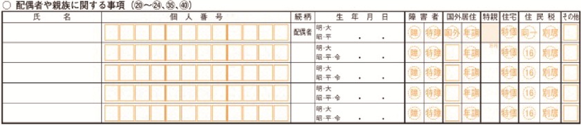 第二表にも親族情報の記載欄が追加されています。e-Taxでも専用入力画面が新設されているため、対象者の情報を正確に入力しましょう。