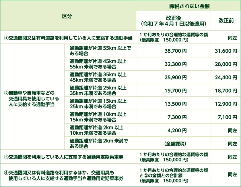 通勤手当の非課税限度額見直し