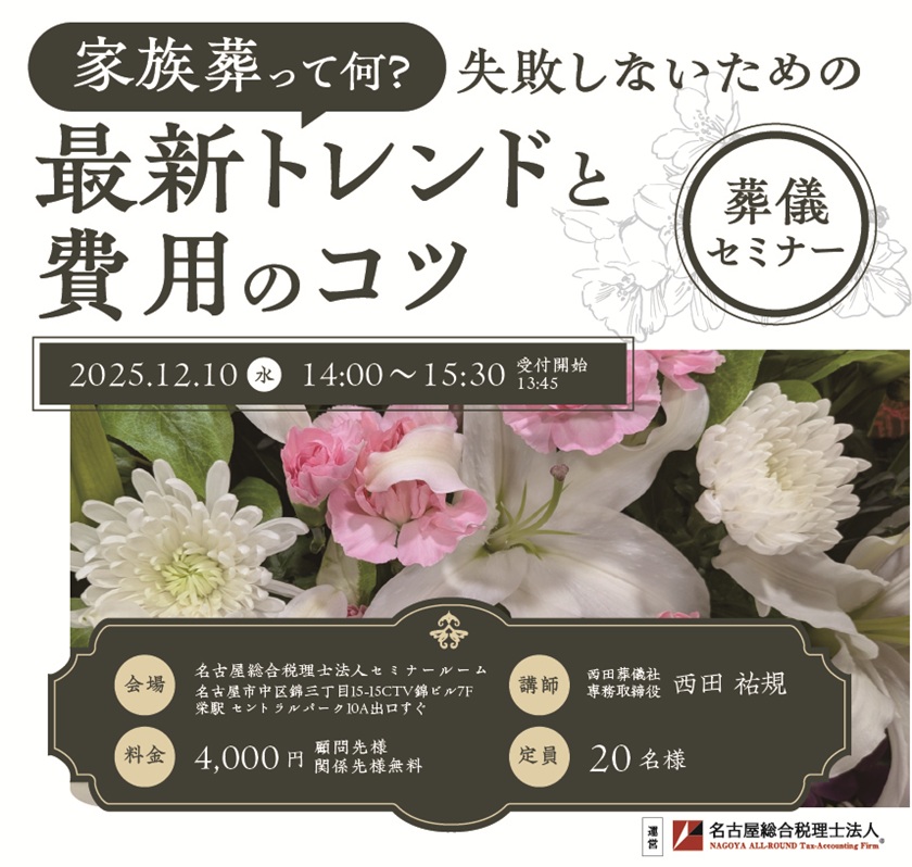 名古屋総合税理士法人トップ セミナー 家族葬って何?失敗しないための最新トレンドと費用のコツ